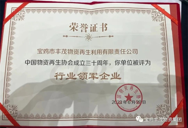 热烈祝贺,宝鸡市丰茂物资再生利用有限责任公司被中国物资再生协会评为行业领军企业。 ...