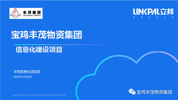 12月21日上午,宝鸡丰茂物资集团召开了信息化平台建设项目启动丰茂集团董事长王海文和陕西立邦软件有限公司董事长高彧韡出席会议并做重要讲话,集团总经理贾伟及双方单位领导、项目组成员参加了会议,会议由财务总监孙晓锋主持。 ...